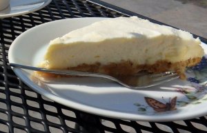 Voor bij de koffie had ik een citroen-monchoutaart gemaakt naar een recept van Judith. Ik heb het recept wel wat aangepast, 500 gram monchou en 500 ml slagroom vond ik wel erg veel, ik heb 300 gram monchou gebruikt en 250 ml slagroom en geen eiwit en ook wat minder lemon curd, daarom is hij niet zo hoog geworden. De taart is heerlijk fris maar ook vrij machtig.