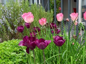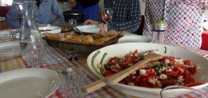 van het mooie weer, dat is wat ik de laatste dagen doe en daarom wordt er niet genaaid. Zaterdag was het te winderig om buiten te zitten, we hadden toen ons gezamenlijk verjaardagsfeest, maar de dagen daarna kon dit volop. We hebben gewandeld, in het zonnetje gezeten, wat onkruid verwijderd enz. Voor het feestje had ik allerlei Italiaanse hapjes gemaakt en ook het eten was Italiaans met o.a. gehaktballetjes in tomatensaus, varkenshaas met salie en rauwe ham, aardappeltjes uit de oven, spaghetti, kip met Parmezaankorst, salade met tomaten en witte bonen, enz.
