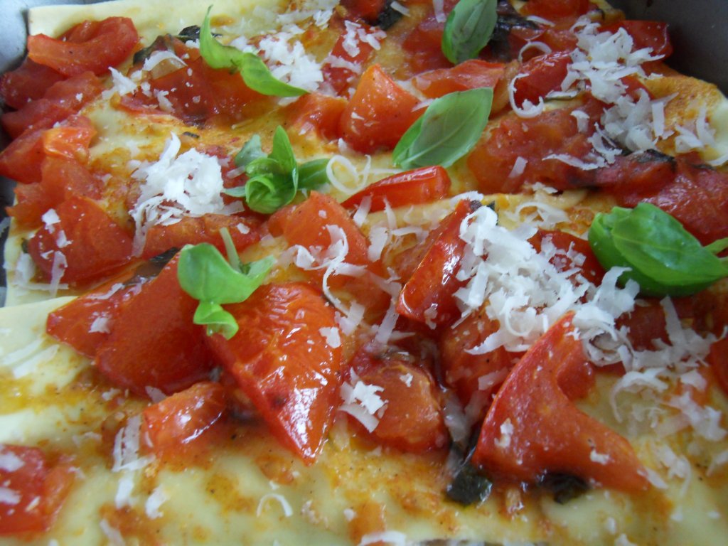 Gisteren wilde ik caramelle met ricotta maken, een recept van Jamie Oliver. Hiervoor heb je vers pastadeeg nodig die je vult en waarvan je een soort toffees maakt. Ik dacht makkelijk te doen en had verse pasta bij de supermarkt gekocht. Helaas is dat niet soepel en het vullen lukte dus helemaal niet. Daarom heb ik er maar lasagne van gemaakt, gewoon wat laagjes op elkaar en toen in de oven. Het smaakte in ieder geval prima!