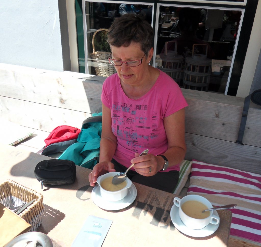 Na 25 km kwamen we weer aan in Stellendam waar we als beloning een heerlijke kop aspergesoep kregen.