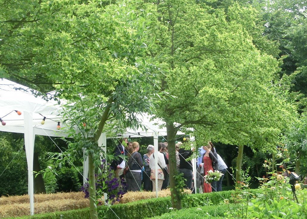 Door de hele tuin waren zitjes en we genoten van live muziek, de hele dag was een fotograaf aanwezig en natuurlijk moest er ook een groepsfoto gemaakt worden. Neef Cees heeft een boek geschreven over “het Leeuwenhof” en dat werd aan het eind van de middag gepresenteerd.