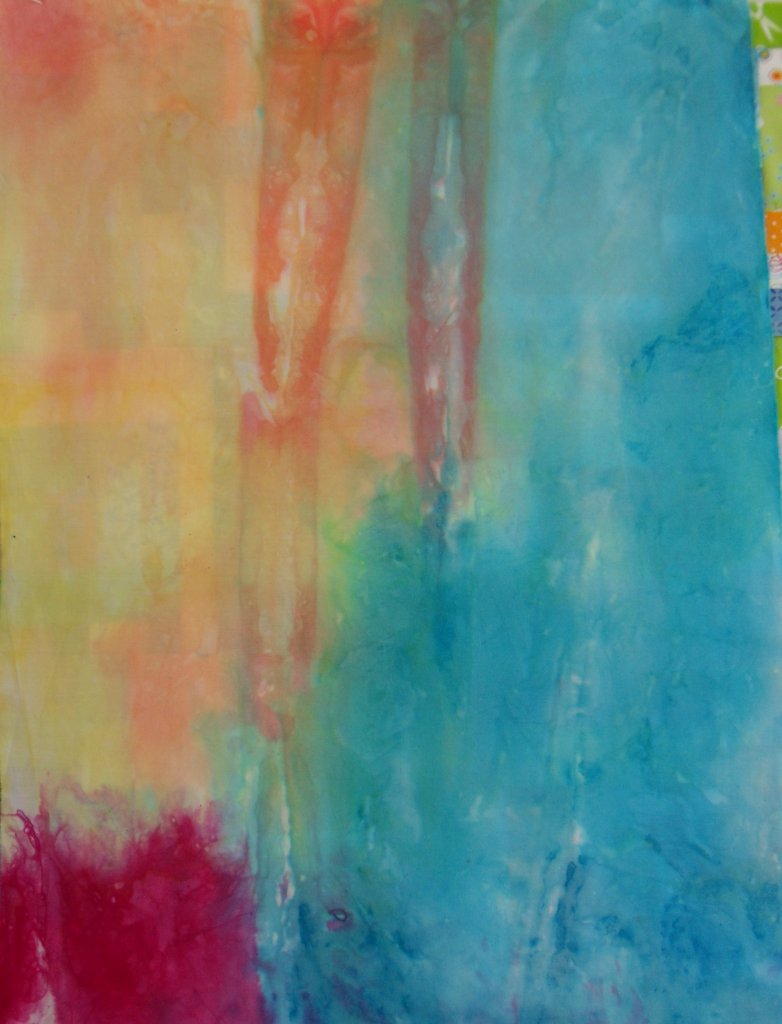 De lappen rechts zijn met verdunde verfoplossing overgoten omdat ik wat meer pasteltinten wilde. Verder heb ik nog lapjes in bakjes gedaan en hier ook weer diverse kleuren aan toegevoegd. Ik heb deze keer niet gekneed maar gewoon afgewacht hoe de verf zich zou gedragen.