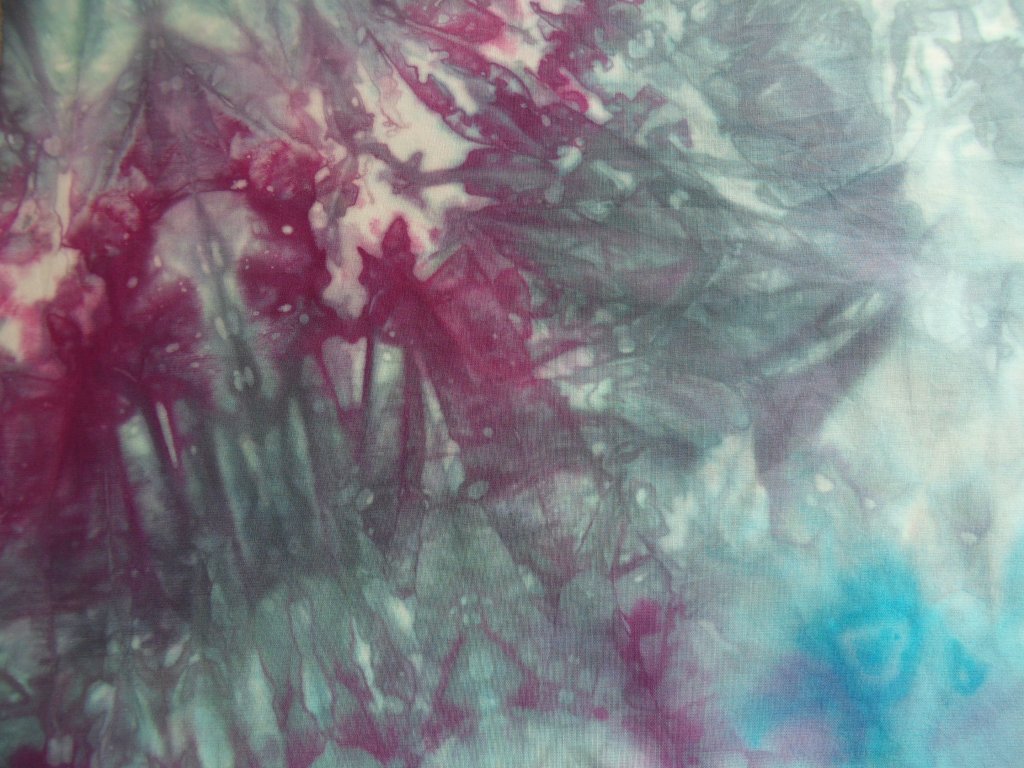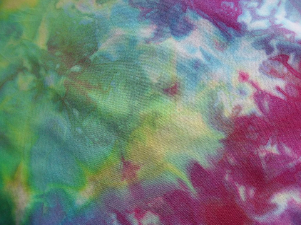 Hier zie je het verschil tussen de felle en pastel lappen. Doordat de verf er goed doorheen gedrongen is heb ik van allebei drie bijna dezelfde lappen.