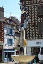 Het was bij aankomst 35 graden, dus hebben we lekker buiten gezeten met een koel drankje. Er waren nog meer gasten en ’s avonds hebben we gezellig met z’n allen zitten barbecueën. De volgende dag was het nog steeds erg heet en toen hebben we een stadswandeling gemaakt in Auxerre, eigenlijk een beetje té heet om te lopen, maar het was wel erg mooi. We liepen in het voetspoor van Cadet Roussel via bronzen plaatjes in de stoep, hier is het standbeeld van hem:
