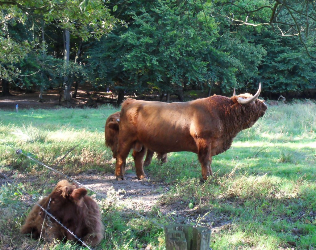 Vlak na de Carolinahoeve zagen we deze dieren, gelukkig afgescheiden door prikkeldraad want de grote zagen er vervaarlijk uit.