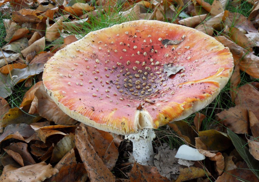 Hoewel het herfst is zagen we opvallend weinig paddenstoelen in het bos, op het laatst nog een klein groepje.
