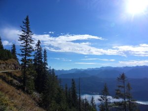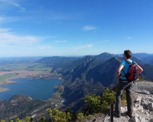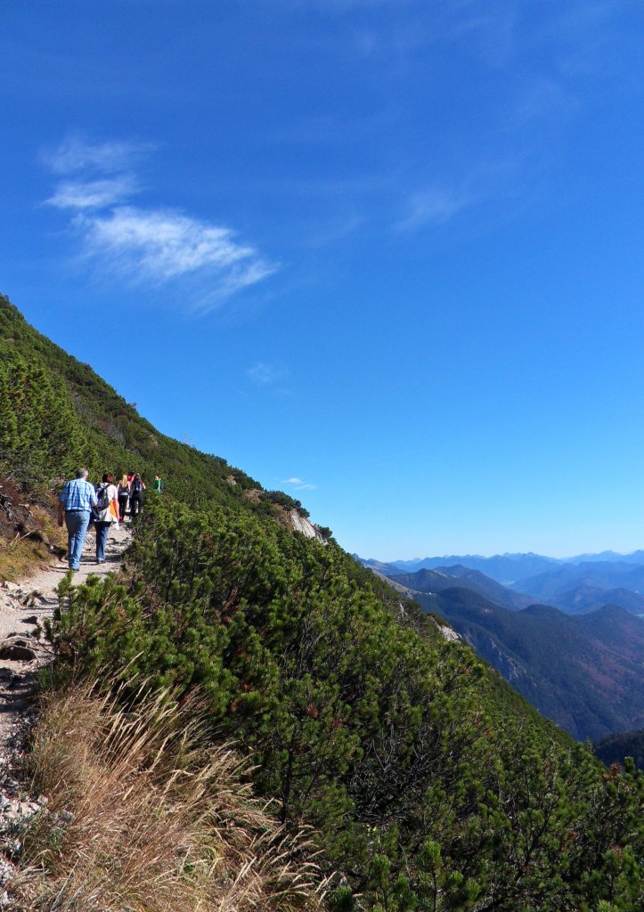 De volgende ochtend stond Derk om 9 uur alweer bij ons hotel en zijn we richting de bergen gereden en wel naar de Herzogstand, een berg in de Vooralpen vlakbij Kochel. Hier zijn we met de kabelbaan omhoog gegaan en vandaar zijn we nog verder naar de top gelopen, vanwaar we een schitterend uitzicht hadden over de omgeving, het was zo helder dat we in de verte München zelfs zagen liggen.