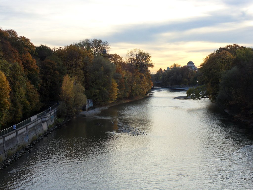 Vanaf één van de bruggen een prachtig uitzicht over de Isar, die door de stad stroomt.