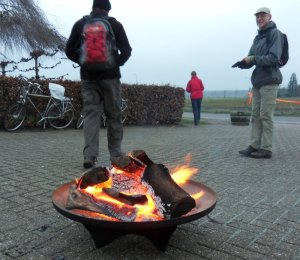 Zaterdag zijn we met zijn vieren naar Huijbergen getrokken voor de pannenkoekentocht van 21 km bij Huijbergen. Nog even de handen warmen voor het vertrek: