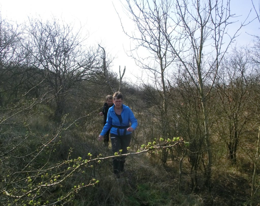 Een prachtige blauwe lucht en het werd al snel lekker warm. Bij de Havanna Beach Club gingen we weer van het strand af en liepen we verder door de duinen.