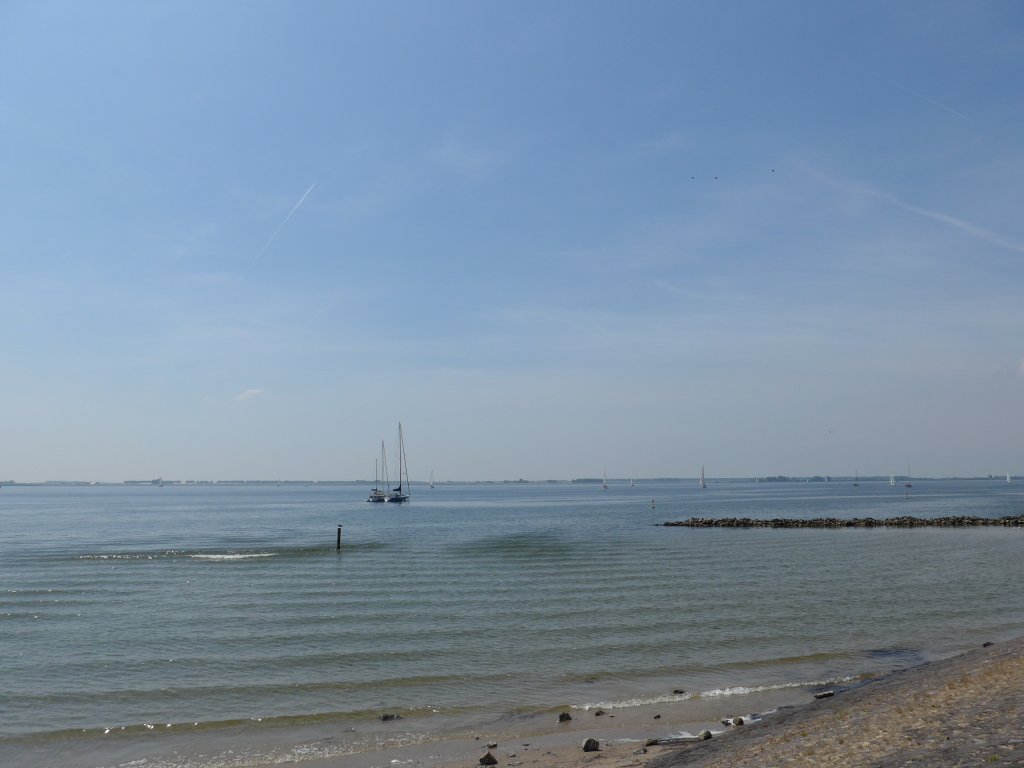 Hier wilde Aat nog een stukje over het strand lopen, maar dat was bijna helemaal verdwenen, af en toe een klein stukje waar je met een man of vier kon zitten en verder alleen duinen.