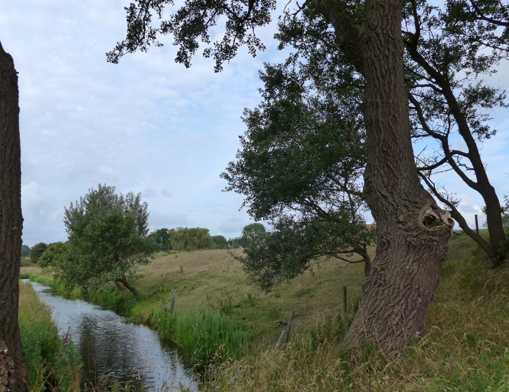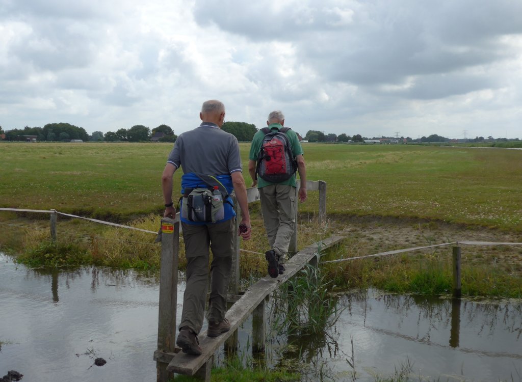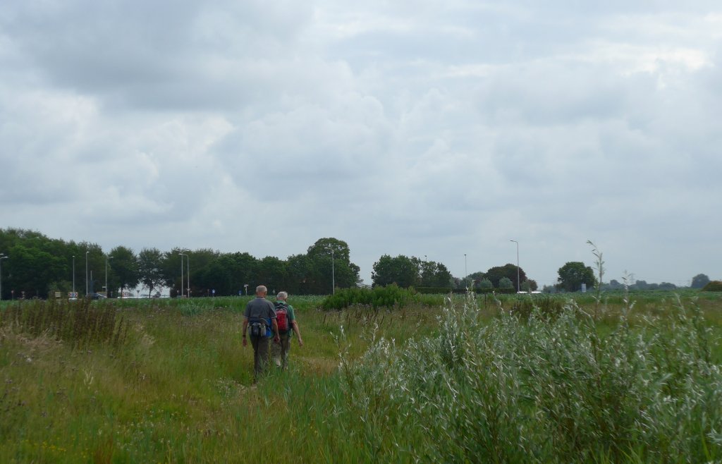 In oktober hadden we deze tocht ook al een keer gedaan maar toen was het gras veel natter, nu bleven we droog, al stond het gras nu wel een stuk hoger, de paaltjes waren soms bijna niet te zien.