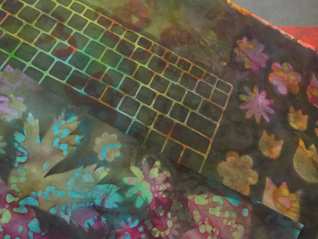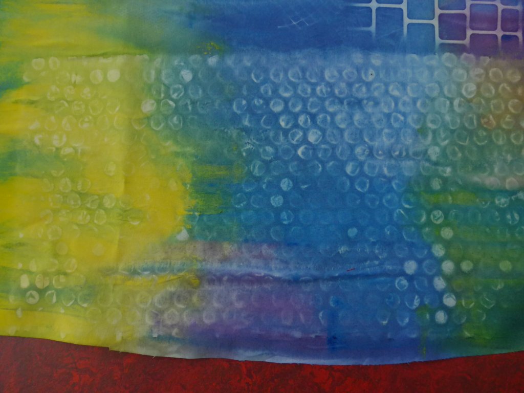 Omdat ik geen speciale verf voor sun printing heb gebruikt is het contrast niet zo erg groot, maar ik vind het toch wel leuk geworden, best toepasbaar. Met bubbeltjesplastic: