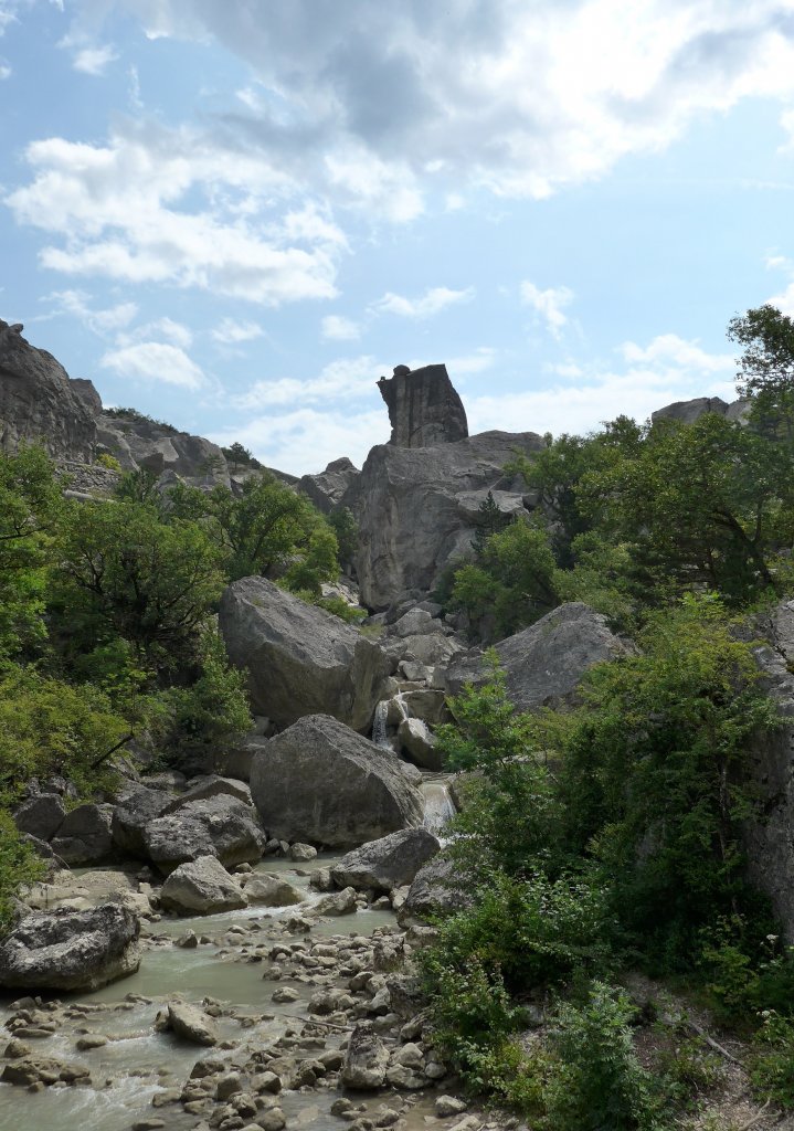 De dagen erna hebben we nog diverse andere wandeltochten gemaakt, o.a. van de Claps naar Luc-en-Diois waar we een stadswandeling hebben gemaakt, toen weer terug en daarna nog een tocht door het moeras vlakbij. De Claps is ontstaan door een enorme steenlawine in 1442, erg indrukwekkend al die gigantische rotsblokken, je kan hier wandelen langs de rivier de Drôme en ook zwemmen en klimmen. P1010913 (Gewijzigd)