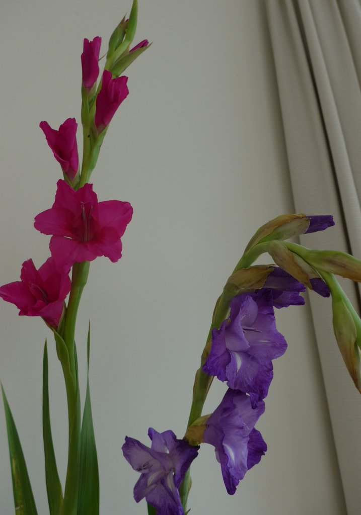 De bruine vind ik niet zo geslaagd, deze lap was waarschijnlijk te groot en te weinig verf gebruikt. De gladiolen van de Omloop bloeien prachtig.