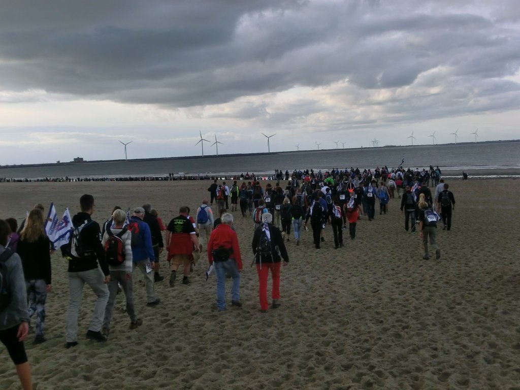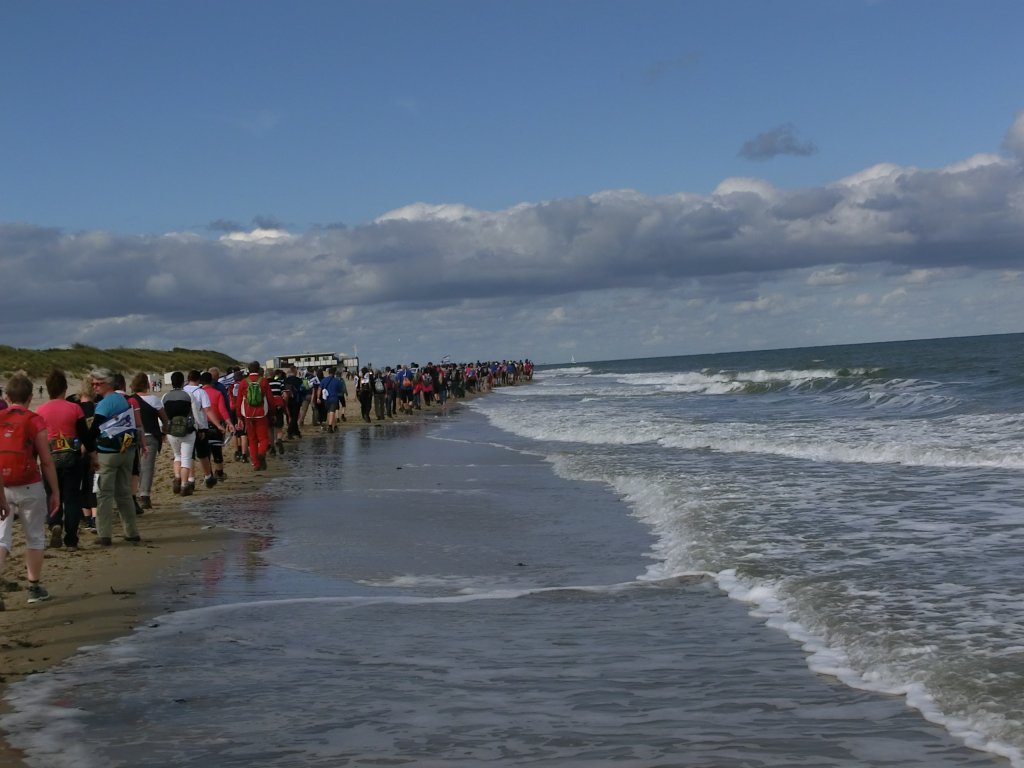 Acht uur ’s morgens begon de enorme stoet aan de tocht van 42 km. Diverse keren moesten ze een stuk over het strand lopen.