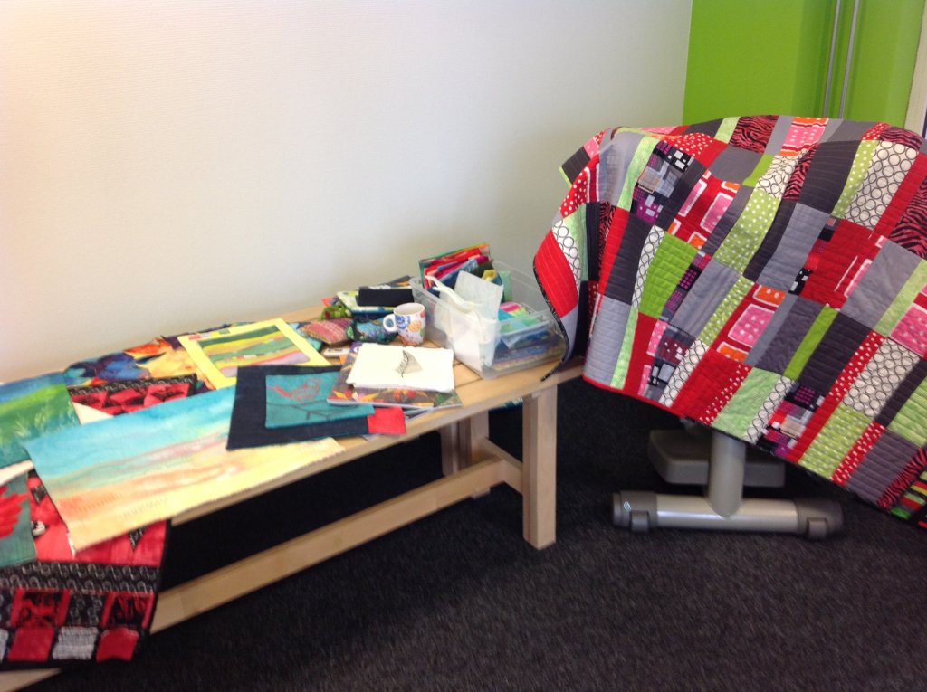 Fit4lady Middelharnis bestaat 5 jaar en vandaag was er een Ladies Day. Leden konden wat van hun hobby laten zien en ik stond er met mijn quiltjes en lapjes. Omdat ik met de fiets was kon ik niet zoveel meenemen, maar mijn hoekje zag er toch best leuk uit.