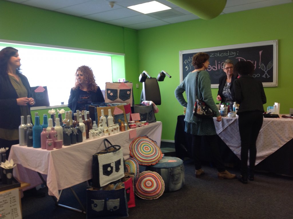 Je kon ook allerlei spullen kopen, zoals leren armbandjes, milieuvriendelijke waterflessen, thee, tassen, Aloë Vera produkten enz. en je kon een kleurenanalyse laten maken of je nagels laten doen, al met al erg gezellig.