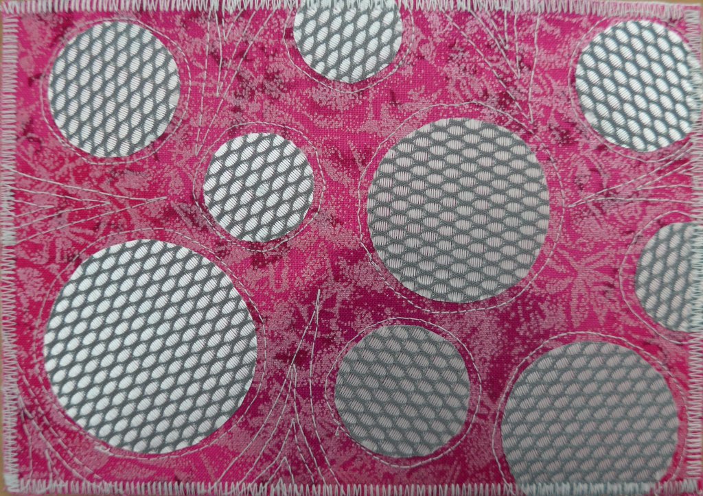 Met glanzende stof heb ik cirkels geplakt op een lapje waar ook een zilveren glans in zit.P1030059 (Gewijzigd)
