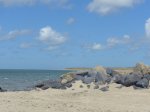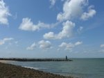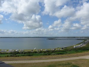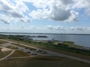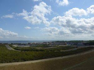 Hier was een kleine streekmarkt, genaamd Zilte Zaterdag maar omdat nog niet alle kraampjes bemand waren besloten we eerst het Inspiratiecentrum te bezoeken. Voor 3 euro kon je naar boven klimmen en daar had je werkelijk een schitterend uitzicht naar alle kanten, je kon aan de ene kant Zeeland zien liggen en aan de andere kant zagen we heel klein de vuurtoren, ook Port Zélande was goed te zien en natuurlijk het strand, echt geweldig!