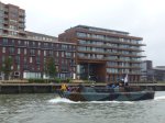 Na de rondvaart wilden we naar de andere kant, naar de Parkkade, dat kon ook weer met een boot. Nu hadden we echter de pech dat er net een grote Ferry moest keren in de haven en daardoor moesten we 3 kwartier blijven liggen wachten, gelukkig was er genoeg te zien.