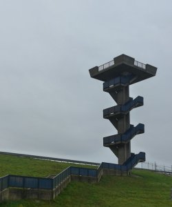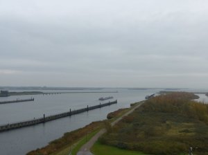 Zaterdag hebben we diverse kleine wandelingen gemaakt. Eerst zijn we naar de Philipsdam gereden om de uitkijktoren bij de Krammersluizen te beklimmen. Dat is echt zoiets waar je heel vaak langs komt en nooit stopt, maar deze keer dus wel. Jammer dat het wat miezerig was, toch kon je best nog ver kijken.