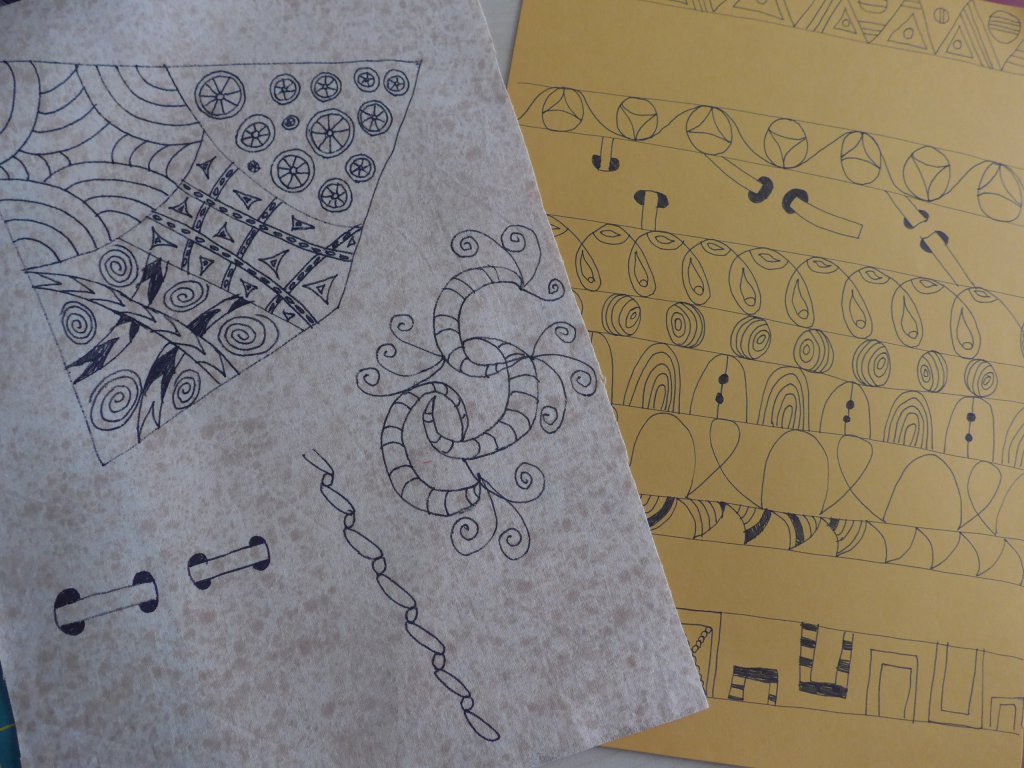 Eind november gaf Agnes, één van de torenquiltsters, een workshop zentangle. Ze had voor iedereen materiaal meegebracht om eerst te oefenen met tekenen op papier en daarna op lapjes.