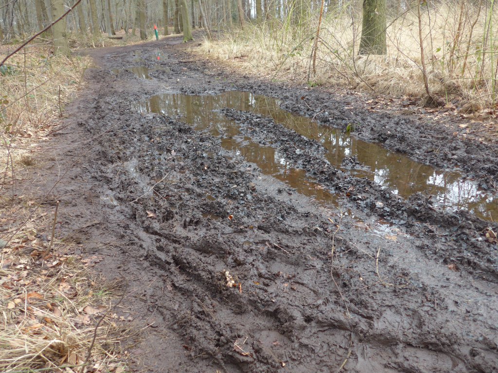 Er was op de hele tocht maar 1 rust en die was pas na 16 km in café ’t Veehandelshuis, hier zijn we dan ook wel even blijven zitten. De tweede helft van de tocht liep gelukkig wat meer door het bos, dat loopt toch wat prettiger, al was het hier en daar flink drassig.