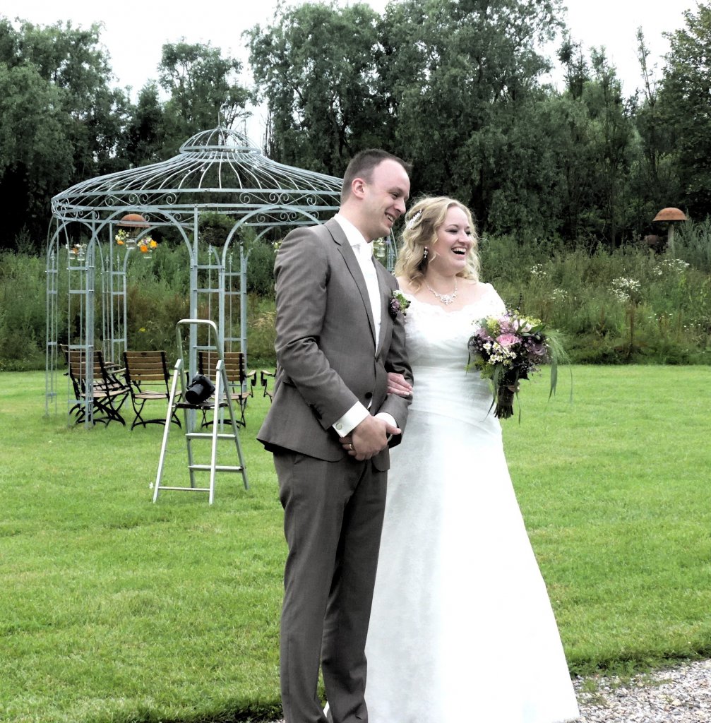 Ondanks de regen was het een heerlijke dag, fijn om te zien en horen hoe gelukkig het bruidspaar met elkaar is en fijn om dit met de hele familie mee te vieren.