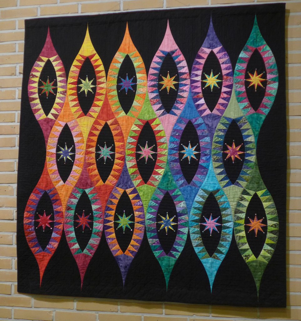 Vrijdagavond was de opening van een kleine quilttentoonstelling in de Remonstrantse Kerk van Sommelsdijk met quilts van Henrike Velthuizen. Samen met Kok en Astrid ben ik hier heen geweest. Henrike quilt nu ongeveer 10 jaar en kan hier heel enthousiast over vertellen. Ze heeft diverse cursussen gevolgd en gaat veel naar tentoonstellingen. Haar werk is vrij traditioneel, al maakt ze ook wel uitstapjes naar moderner werk. Ik heb niet veel foto’s gemaakt omdat het vrij druk was in de kerk. De tentoonstelling duurt nog tot begin november.