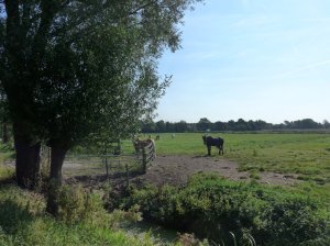 Vooral op de smalle paadjes was het dringen, maar later waaierde de groep gelukkig uit elkaar. Het was weer heerlijk weer zodat we gelijk al zonder jas konden beginnen. Het was een heel leuke route, veel langs het water en door de polders van Midden-Delfland en tenslotte ook nog een stukje door Schiedam en Vlaardingen. Echt Hollands landschap, met slootjes, hekjes, bruggetjes, bomen, koeien, schapen enz., mooi!