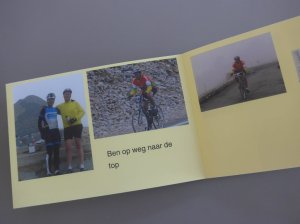 Als herinnering aan onze beklimming van de Mont Ventoux vond ik het leuk om voor allemaal een fotoboekje samen te stellen. Zonder dat we het van elkaar wisten kwam zus Marianne op het zelfde idee, dus nu hebben we er twee! Zij heeft voor iedereen een persoonlijk boekje gemaakt en ik heb een algemeen boekje gemaakt, ze zijn dus toch heel verschillend.