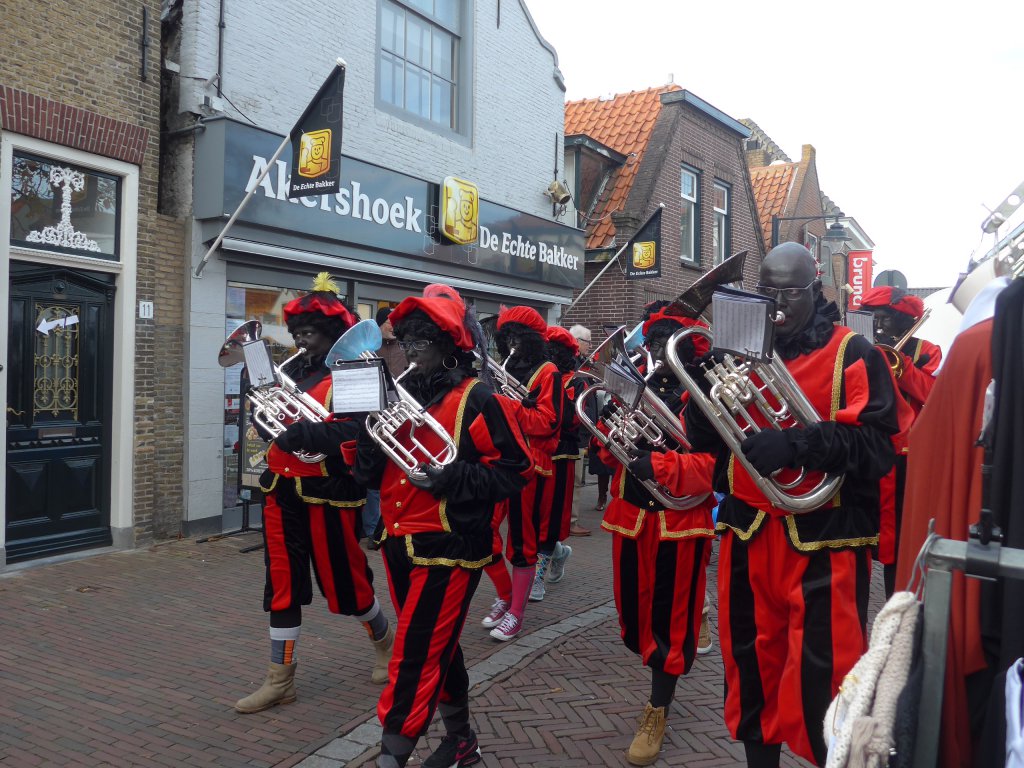 Hierna kozen we voor de verkorte route en liepen we weer naar het centrum van Ouddorp waar een kerstmarkt was met vrolijke muziek van Zwarte Pieten.