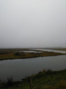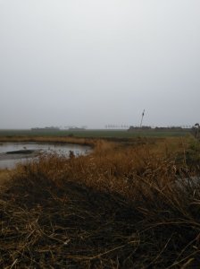 Vandaag was er geen enkele georganiseerde wandeling in de buurt, dus maakten we zelf een route. Ook deze keer weer rond Ouddorp, maar weer heel anders dan de vorige keren, het is daar zo mooi en afwisselend. We begonnen bij het grote parkeerterrein bij strand Noord en liepen eerst een stuk over het strand. Het was behoorlijk mistig en daardoor ontstond een mysterieuze sfeer, heel apart. Daarna liepen we via de Oostdijk naar Goedereede waar we een bakje deden bij café ’t Sas. Vervolgens staken we de grote weg over en even later liepen we het natuurgebied de Koudenhoek in. Het bleef mistig maar het was erg mooi om hier te lopen, veel water en allerlei vogels.