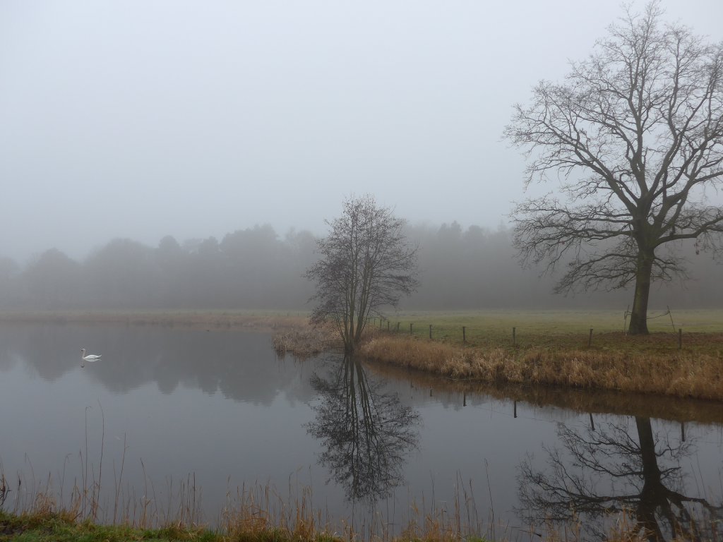 Zaterdag was ik nog niet genoeg opgeknapt om een georganiseerde tocht van 25 km te gaan lopen, we hebben toen een gedeelte van het landgoederenpad bij Oostvoorne gelopen. Deze tocht is niet meer bewegwijzerd, maar we hebben het boekje en met de beschrijving lukte het ons wel. Het was vooral in het begin behoorlijk mistig, maar windstil, dus koud was het niet echt.