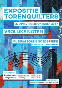 Vorige week woensdag hebben we onze quilts weer opgehangen in de toren van Goedereede voor onze tweejaarlijkse tentoonstelling. Het thema is deze keer “Muziek” en de titel van de tentoonstelling is: Vrolijke Noten.