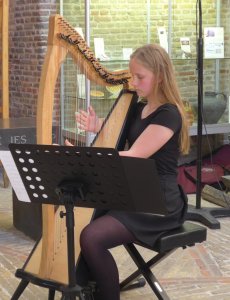 Bij de opening was heel toepasselijk een harpiste aanwezig die enkele mooie nummers speelde.