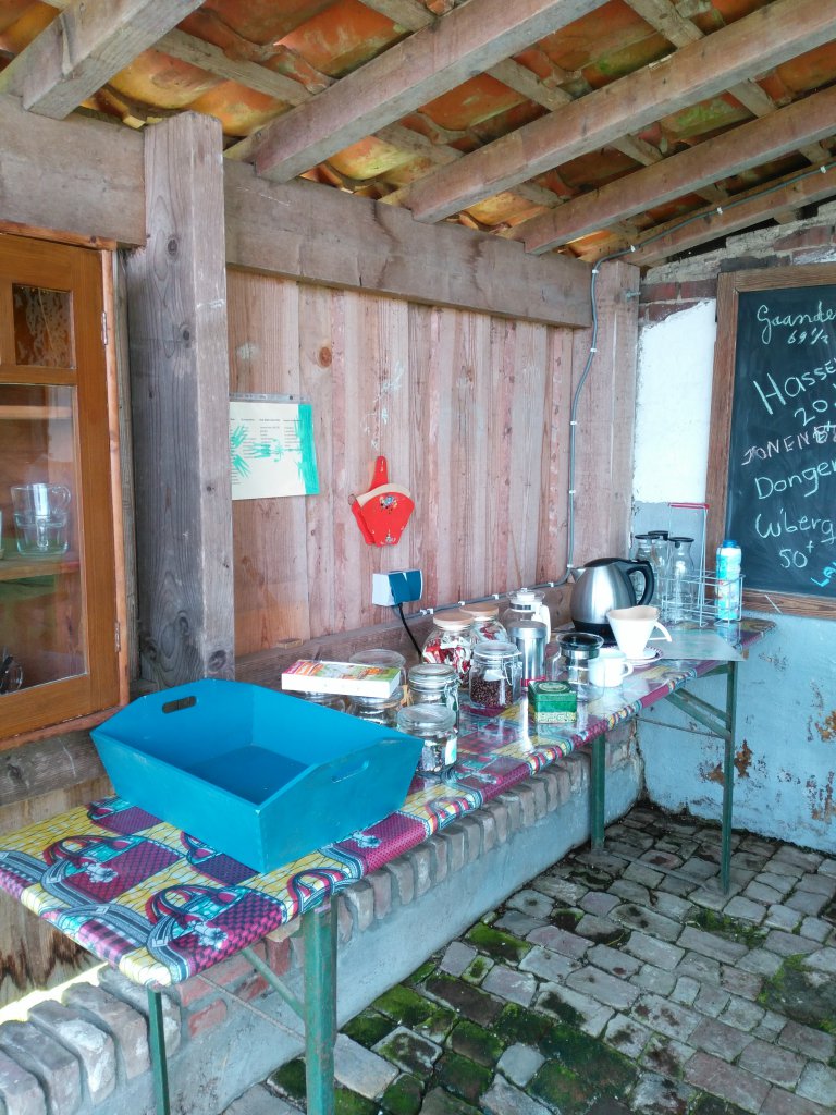 Ook zagen we regelmatig een bord met Rust wat een rustpunt aangaf, meestal bij een boerderij. Hier kan je altijd koffie of thee drinken, er is een toilet en vaak nog informatie over de omgeving. Dit was wel een heel uitgebreid rustpunt, we kwamen hier net na een bui aan en konden alles heerlijk laten drogen.