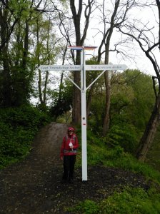 Maandagochtend regende het helaas al toen we vertrokken, dus ging de regenbroek gelijk aan. Gelukkig bleef het niet al te hard regenen, maar veranderde het al snel in een miezerig regentje wat wel de hele tocht bleef. Ik denk dat we deze dag de meeste wandelaars tegen kwamen, leuk om af en toe een praatje te maken.