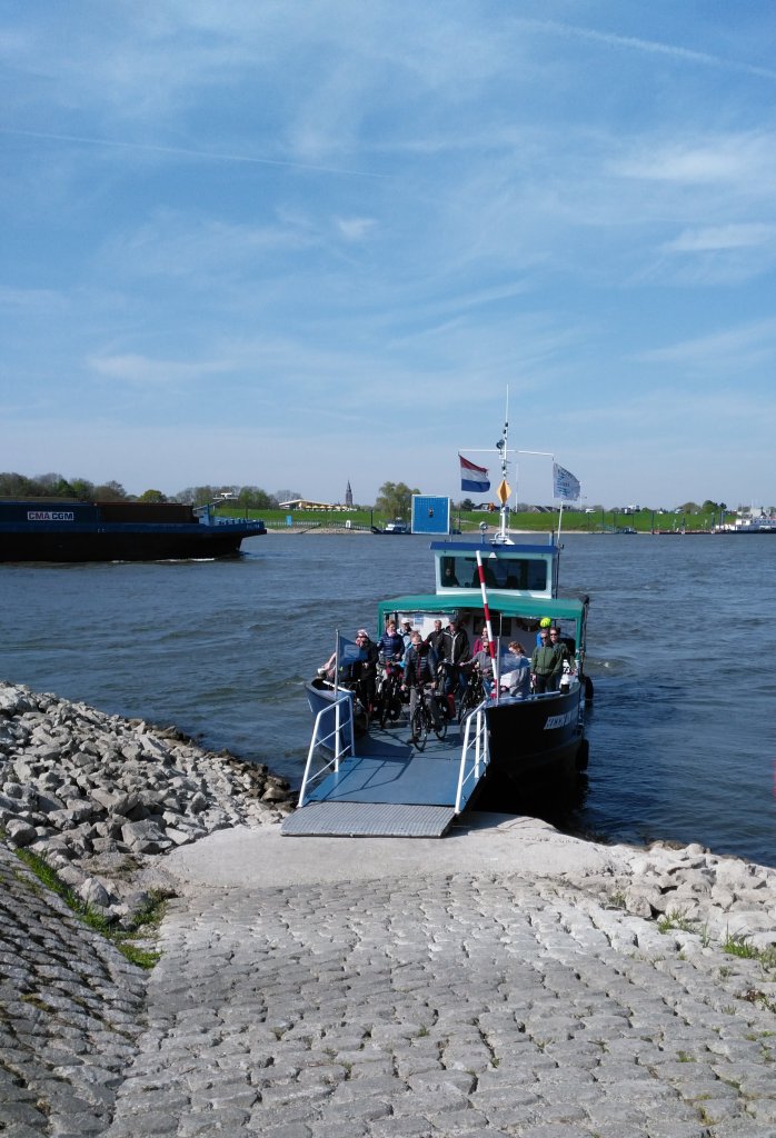 De volgende morgen liepen we via Tolkamer naar de Rijn waar we met een pontje overgezet werden naar Millingen.