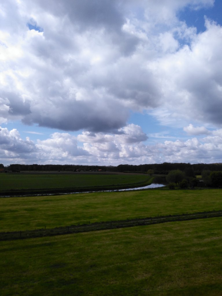 Deze dag was het een stuk warmer, maar het waaide wel erg hard. Ook hier was de natuur weer prachtig en we slingerden regelmatig door Duitsland. Ons laatste b&b was ook in Duitsland en wel in Zyfflich, bij b&b Ciconia, wat ooievaar betekent, er nestelen nogal vaak ooievaars in dit gebied. Ook hier werden we weer hartelijk ontvangen en hadden we een mooie kamer. ’s Avonds hebben we in het dorp gegeten bij Haus Polm, wel lekker, maar het hoofdgerecht was te zout naar onze smaak.