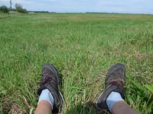 We hadden koffie en thee meegenomen en halverwege hebben we dit lekker in het gras opgedronken.