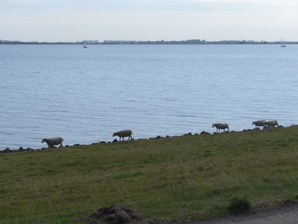 Zoals meestal lekker uitwaaien langs het water. De schaapjes liepen allemaal keurig achter elkaar.