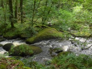 Donderdags hebben we weer een wandeling uit het boekje gemaakt, nu vanuit Huelgoat. Deze voerde ons het eerste stuk langs een kanaal dat tussen enorme rotsen doorslingert waarna we uitkwamen bij een oude zilvermijn. Daarna liepen we langs Camp Artus, een oude legerstede, naar de vallei van de Argent. Hier liggen enorme rotsblokken chaotisch door elkaar, het heet dan ook Chaos de Huelgoat, één rots heette Roche Tremblante en deze kon je inderdaad heen en weer laten bewegen. Er stond net een hele groep toeristen en die moesten natuurlijk allemaal filmpjes maken dat ze die rots konden laten bewegen… Het was weer een mooie tocht maar we liepen wel geregeld door het bos, dus ik heb niet veel foto’s gemaakt.