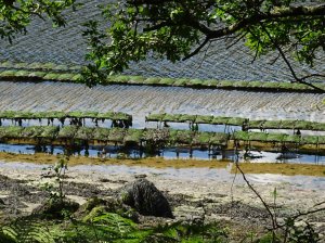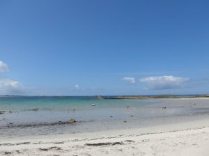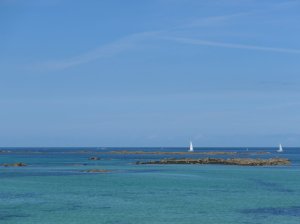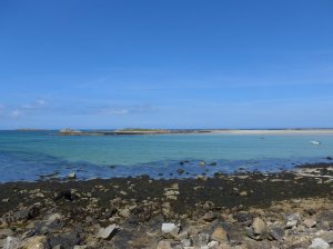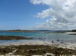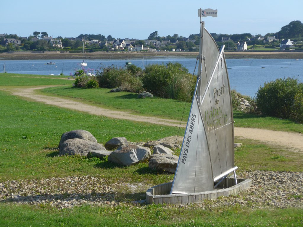Zondag zijn we naar de kust gereden voor weer een tocht uit het boekje, vanuit Aber Wrac’h. Dit ligt aan de noordwestelijke kust van Bretagne en hier heeft de kust diepe inhammen die abers worden genoemd. Bij eb zie je overal de oesterbanken die dan aan de oppervlakte komen.