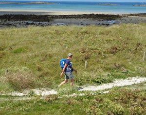 Eerst staken we het schiereiland over en daarna liepen we het hele eind langs de kust, prachtig al die vergezichten over het water met schitterende wolkenpartijen, af en toe een echt strandje waar veel mensen op af kwamen maar meestal kon je niet echt langs het water lopen. Dit was eigenlijk de enige dag waarop we in korte broek konden lopen.
