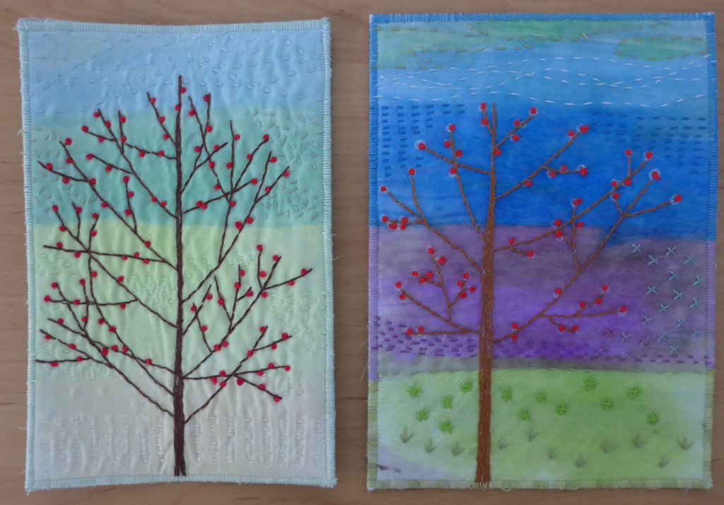 Bij de volgende twee heb ik Franse knoopjes gebruikt om besjes aan te geven. Ik had eerlijk gezegd nog nooit Franse knoopjes gemaakt, maar het is echt heel makkelijk om te doen en het geeft een leuk effect.