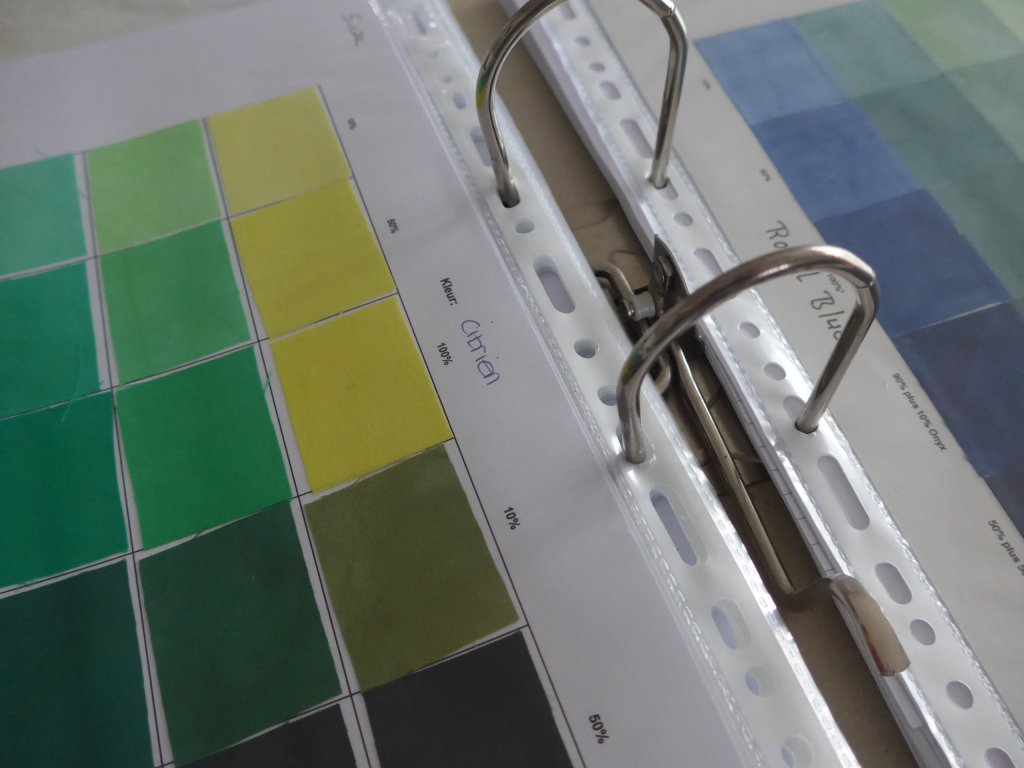 Voor een projectje had ik een bepaalde kleur in gedachten en toen kwamen de staalkaarten goed van pas. Jaren geleden heb ik meegedaan met een staalkaartenruil van Nienke, altijd handig als je gaat verven.