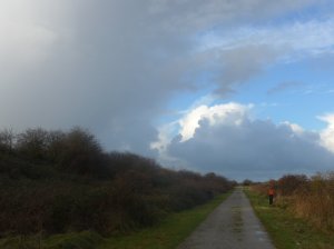 Het zonnetje kwam al snel weer tevoorschijn en we genoten van de prachtige wolken. We wilden eigenlijk nog een stukje over het strand maar dat hebben we maar overgeslagen, Aat had nog teveel last van zijn verzwikte enkel en voor mijn achillespees is dat ook niet zo lekker.