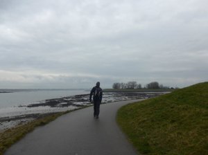 Nu liepen we een heel stuk langs de Krabbenkreek, zo’n 5 km waar we slechts één iemand zagen, het zonnetje kwam ook af en toe door maar de laatste 2 km tot de auto regende het jammer genoeg.